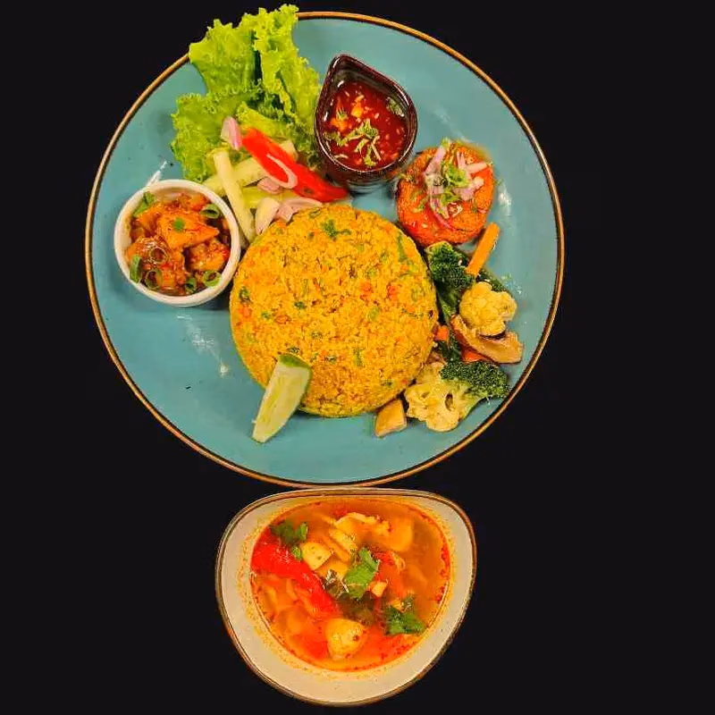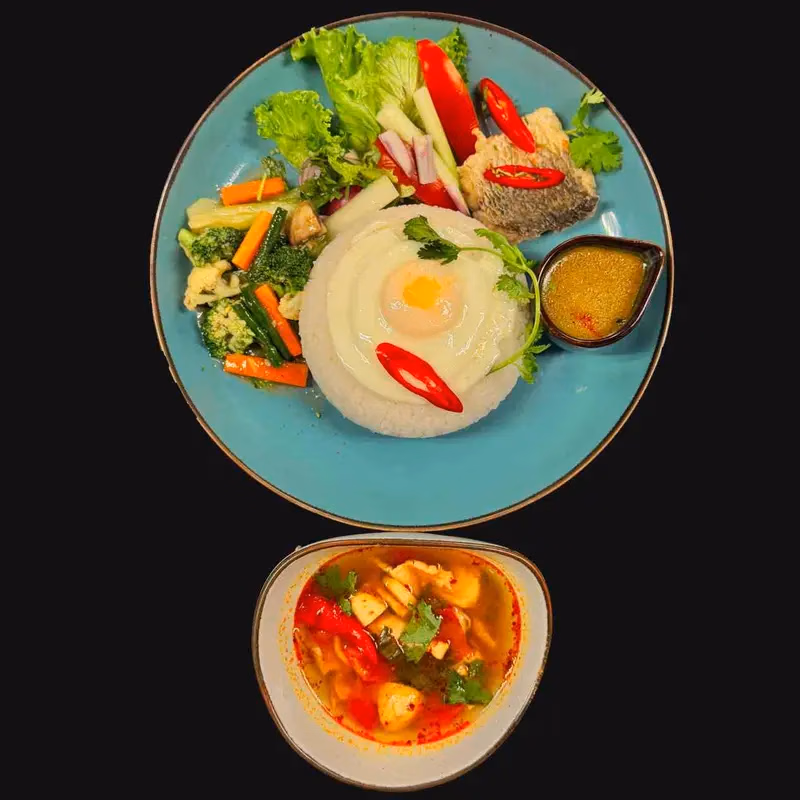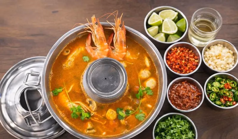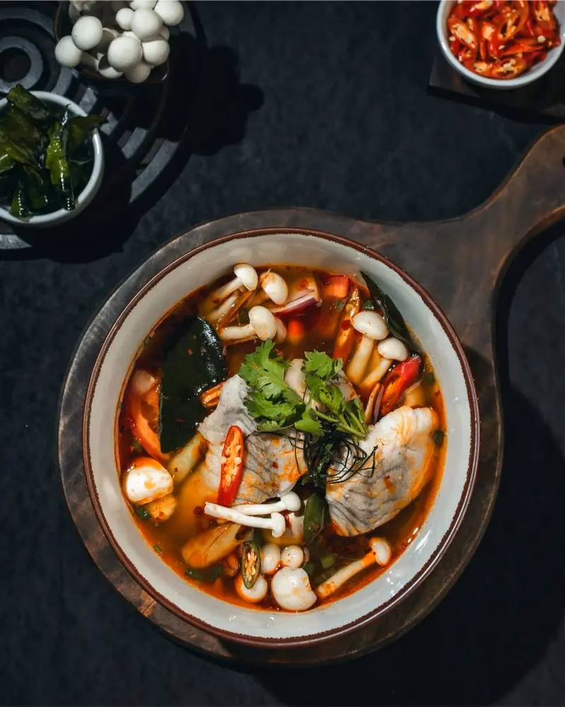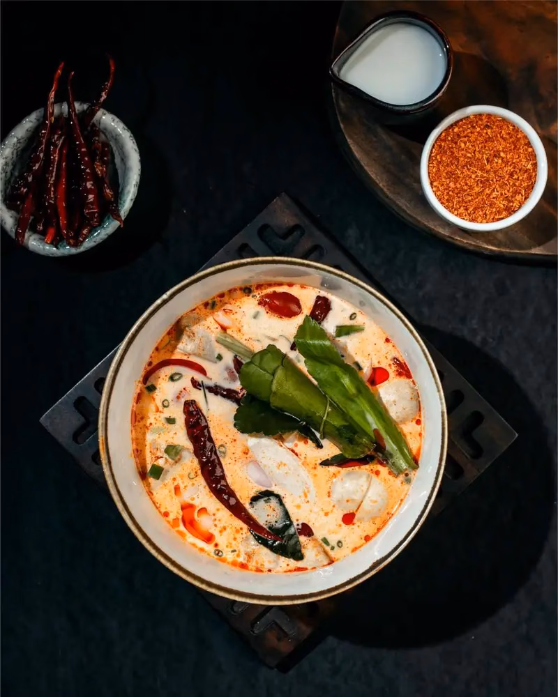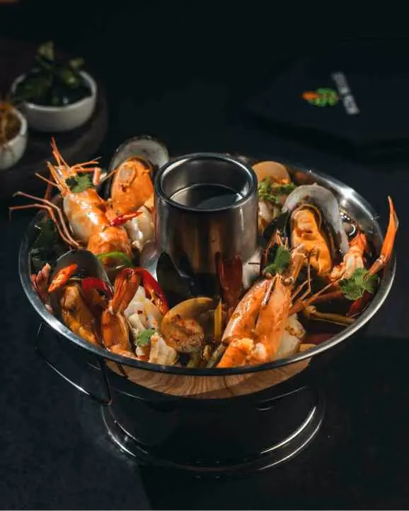 Refers to a rich, mixed Thai-style Tom Yum soup loaded with different seafood like prawn, squid, mussels, and clam—creating a “symphony” of flavors. It’s a creative or restaurant-style name emphasizing the complex balance of tastes.