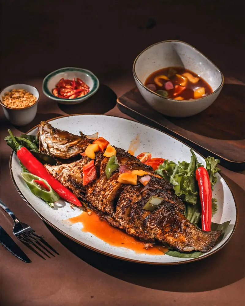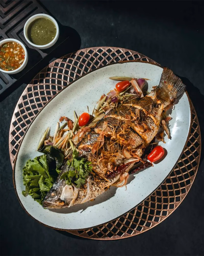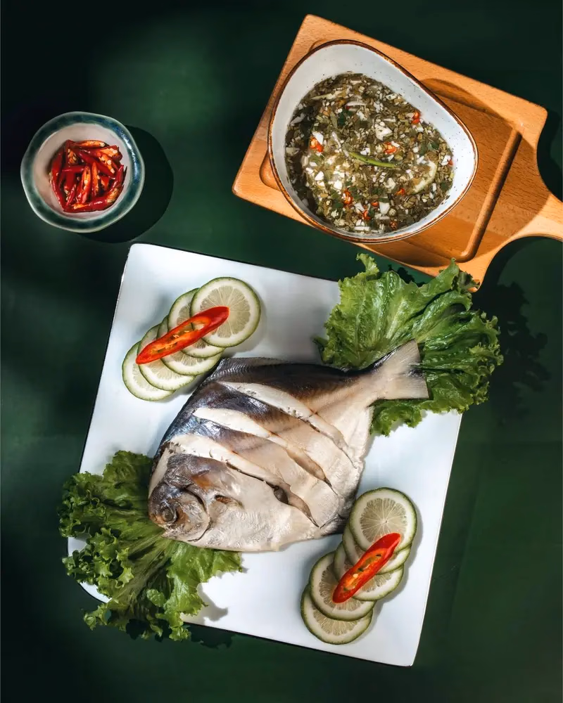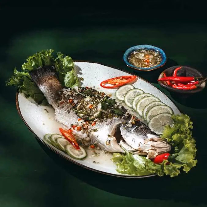Steamed Whole White Snapper is a popular seafood dish in many Asian cuisines, especially Thai. Steamed whole white snapper with chili, lemon and coriander in spicy lime signature phringkla sauce.