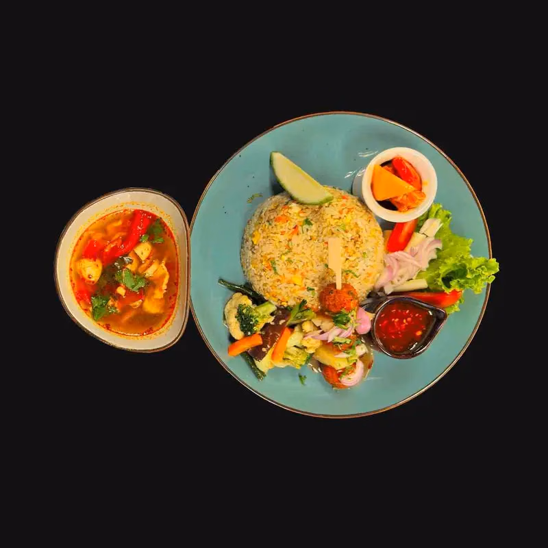 Refers to a rich, mixed Thai-style Tom Yum soup loaded with different seafood like prawn, squid, mussels, and clam—creating a “symphony” of flavors. It’s a creative or restaurant-style name emphasizing the complex balance of tastes.